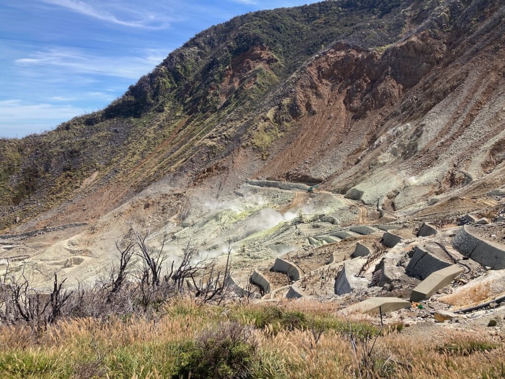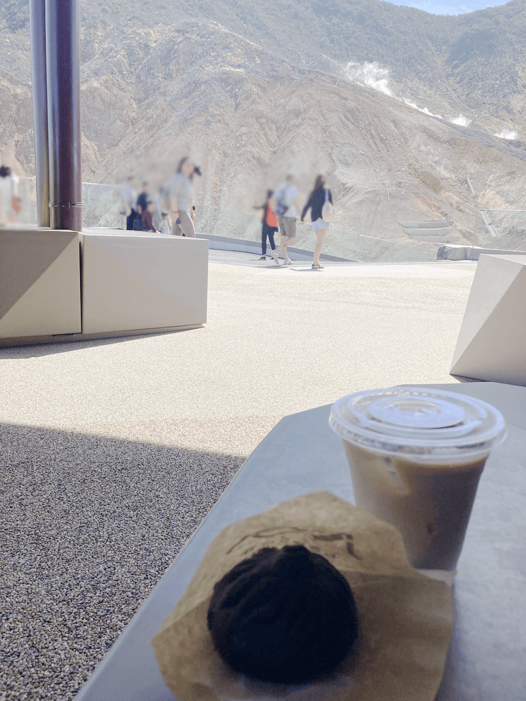 自然を体現するような岩岩しい景色を見ながら真っ黒な大涌谷カレーまんを食べました。