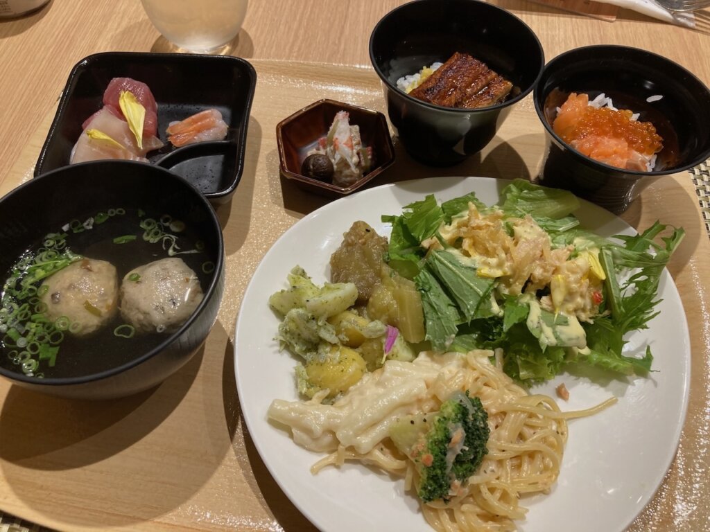 一般的なビュッフェにはないような凝った和食もあり、超満足!(うなぎはやっぱりいいですね)