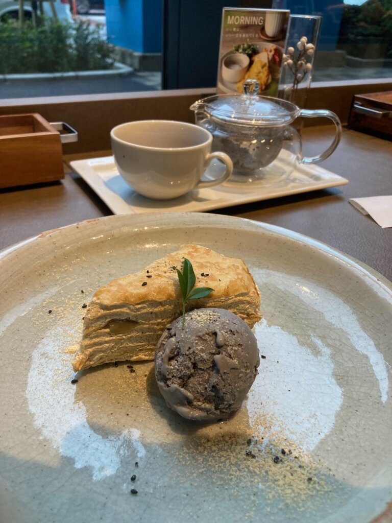 ミルクレープは甘さ控えめでしたが、ゴマアイスがちょうどいい甘さでいいコンビネーション!