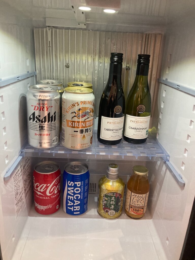 実は、このグランドスイートのお部屋では冷蔵庫内のドリンクが無料とのことで、これは嬉しいサービス!